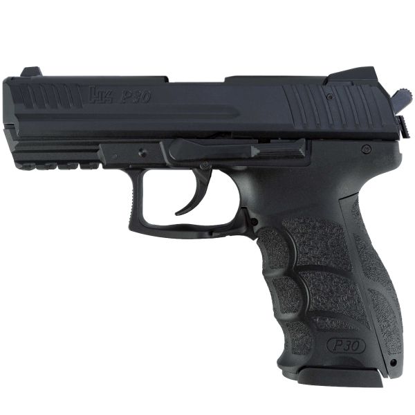 The H&K P30 caliber 9 mm PAK starting pistol is an exact replica of the semi-automatic pistol with a magazine capacity of 15 rounds, as well as functioning controls like a decocking button and slide stop.