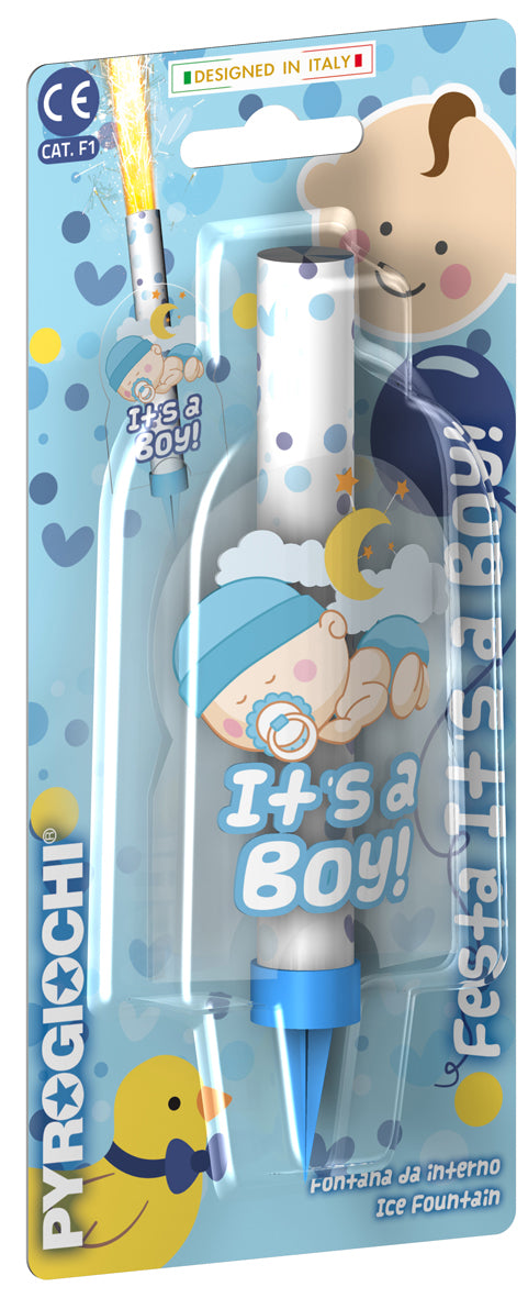 These blue ice fountains are perfect for gender revealing party’s. 45 second burn time, also includes ” ITS A BOY ” motif.